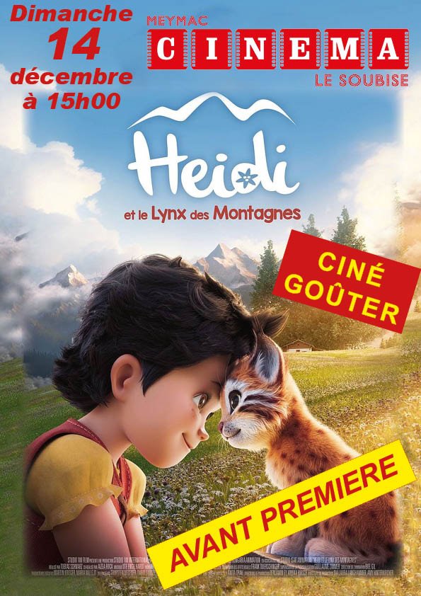 Le Cinéma Le Soubise et notre médiateur Aymeric Favrel  vous proposent un ciné-goûter dimanche 14 décembre à 15 heures pour découvrir en avant-première le dessin animé "Heidi et le lynx des montagnes"