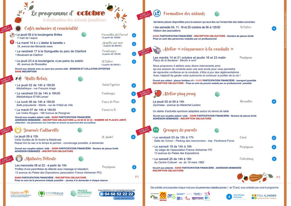 📣 Voici ci-dessous le programme des actions de soutien aux aidants familiaux prévues pour le mois d'octobre 2025, sur les Pyrénées-Orientales.