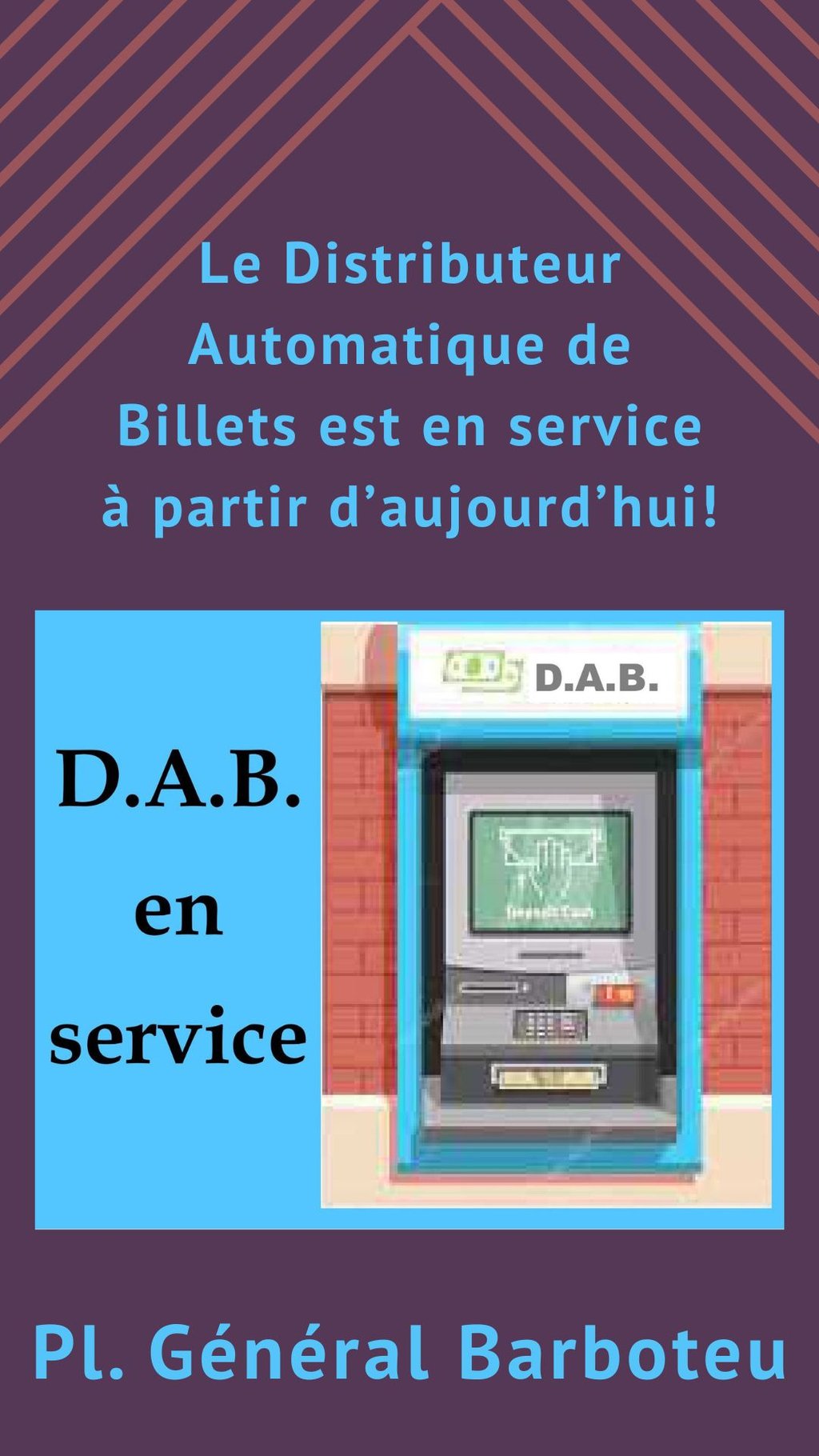 Le Distributeur Automatique de Billets communal est en service Ă partir d'aujourd'hui.