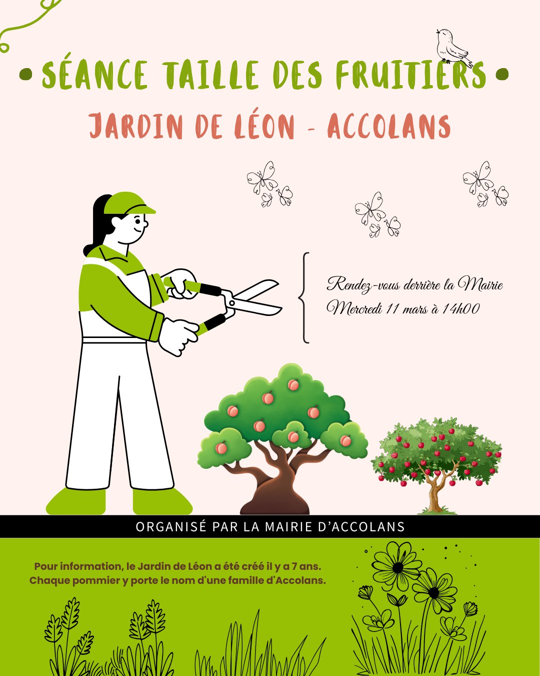 La commune d'Accolans organise une séance de taille d'arbres fruitiers le mercredi 11 mars 2026.