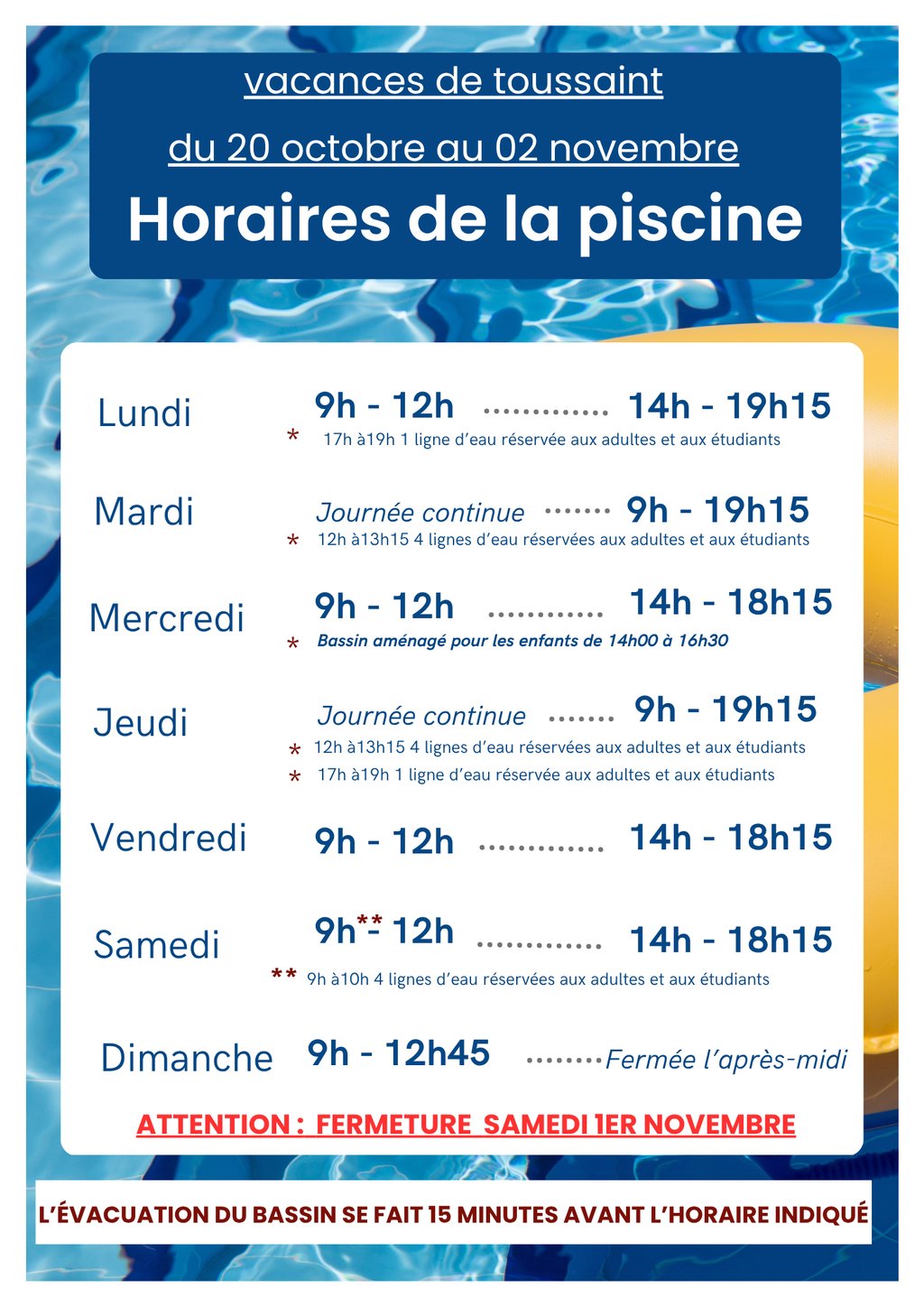 LES HORAIRES DE PISCINE PENDANT LES V...