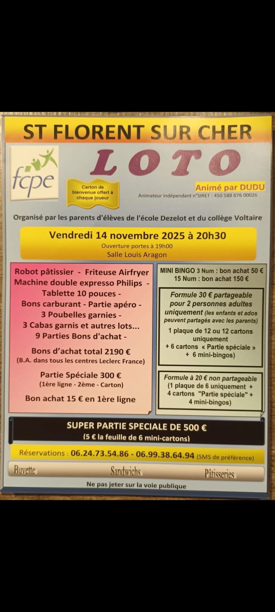 L'association de parents d'élèves FCPE organise des rifles le vendredi 14 novembre à 20h30 (ouverture des portes à 19h), au centre culturel Louis Aragon.