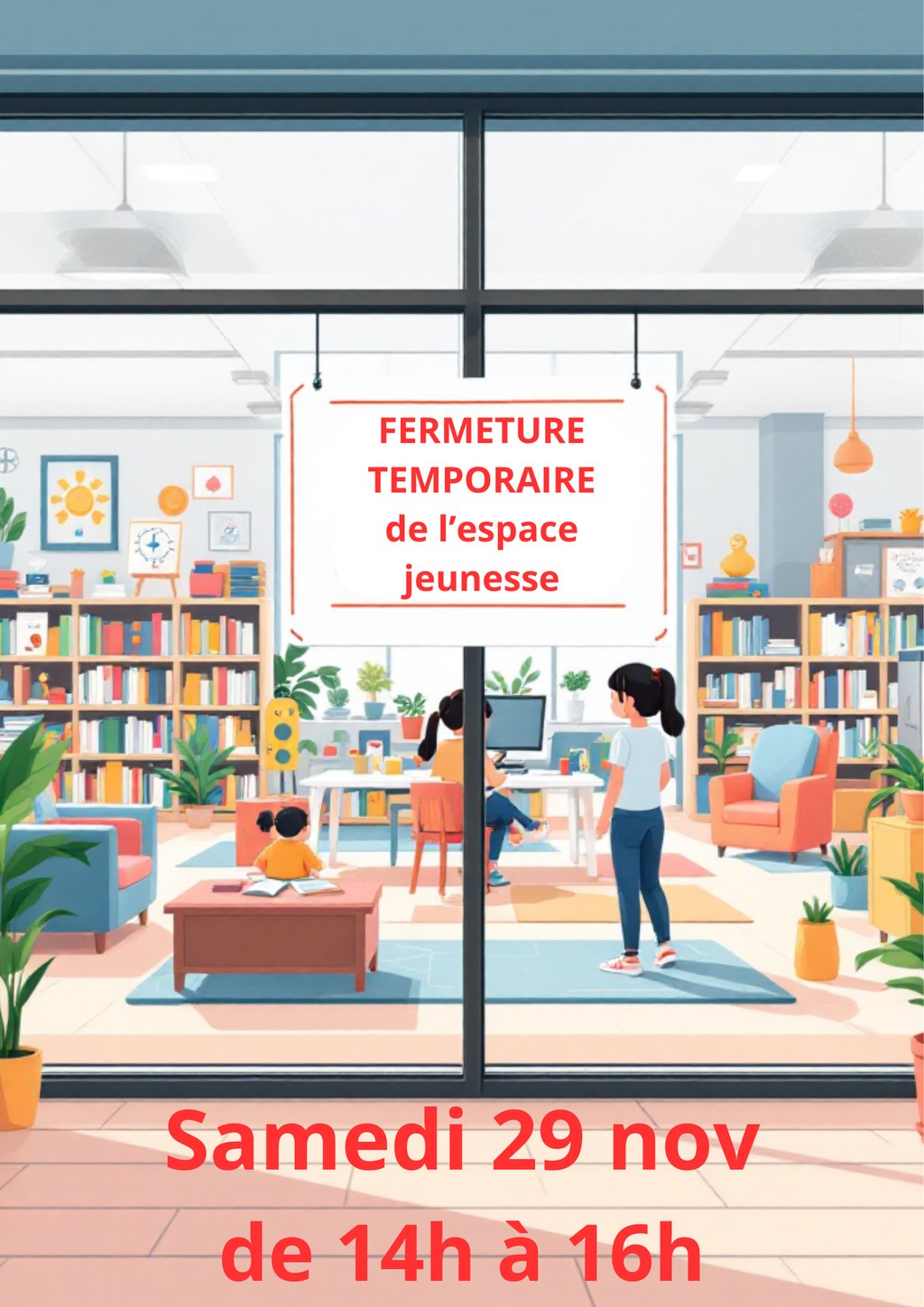 Fermeture temporaire de l'espace jeunesse samedi 29 nov. de 14h à 16h : une pause exceptionnelle pour un moment unique !