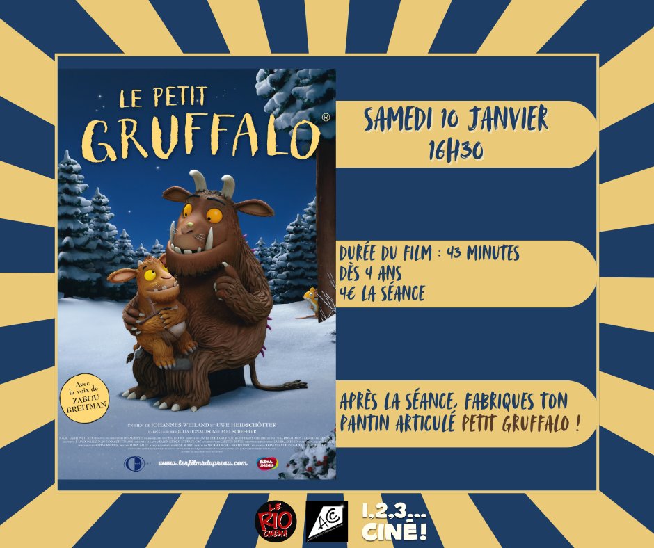 Retrouvez Le petit gruffalo ce samedi au Rio dans le cadre de 1,2,3... Ciné !