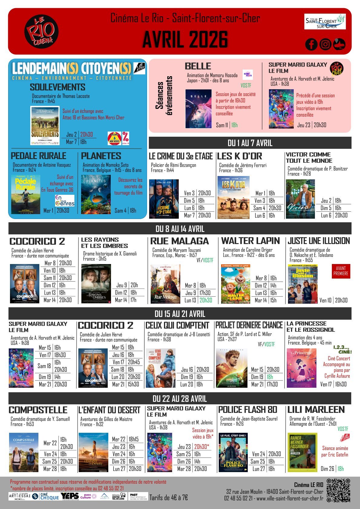 Ce n'est pas parce que le soleil arrive qu'on ne peut pas aller au cinéma découvrir en avril l'avant-première "Juste une illusion",profiter d'une session jeux vidéo suivi du prochain Mario ou tant d'autres choses 😃