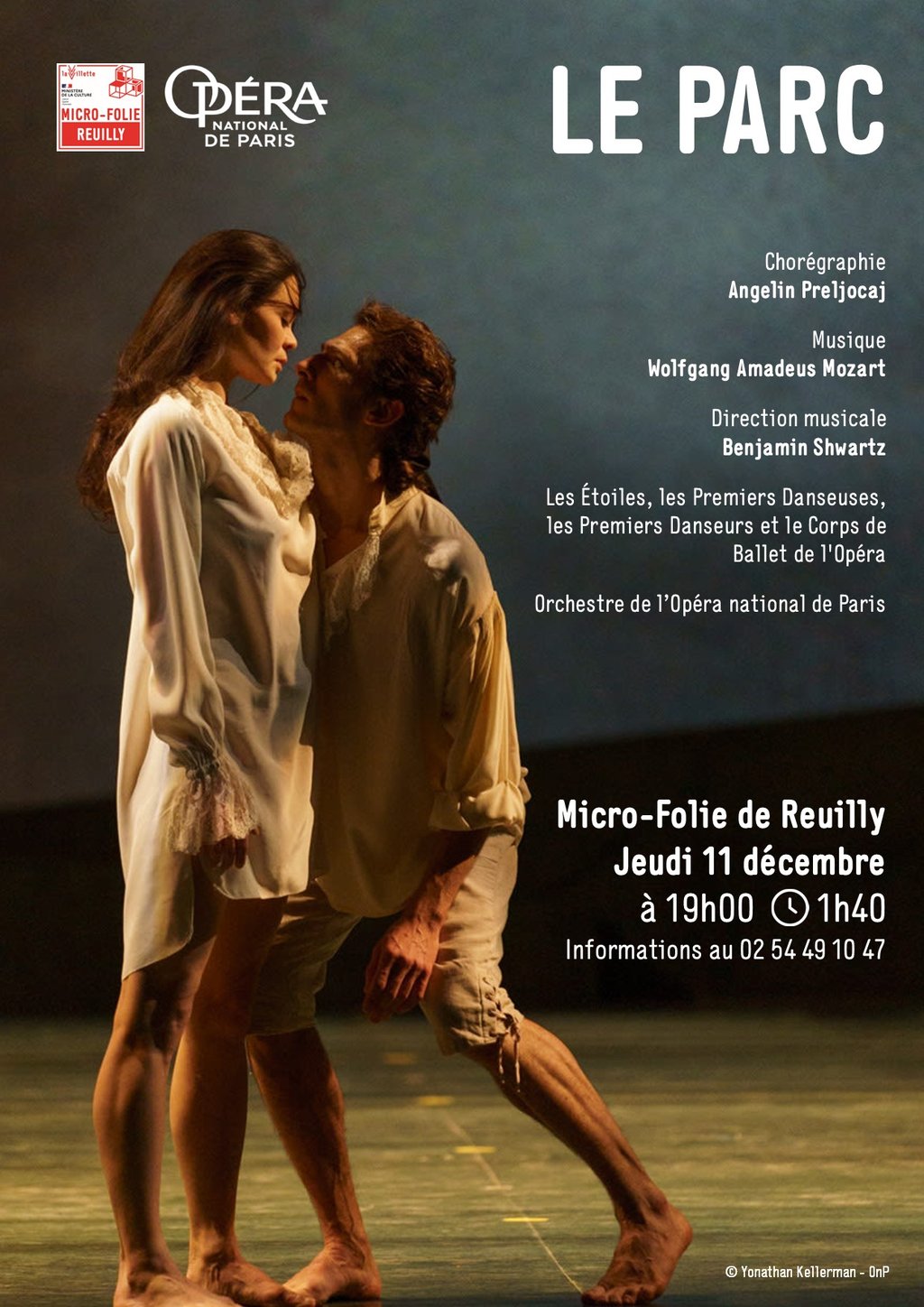 Venez découvrir le magnifique ballet "LE PARC", une œuvre chorégraphiée par l'illustre Angelin Preljocaj, sur les mélodies intemporelles de Wolfgang Amadeus Mozart. Sous la direction musicale de Benjamin Shwartz, vous aurez la chance d'admirer les Étoiles, les Premiers Danseuses, les Premiers Danseurs et le Corps de Ballet de l'Opéra, accompagnés par l'Orchestre de l'Opéra national de Paris.