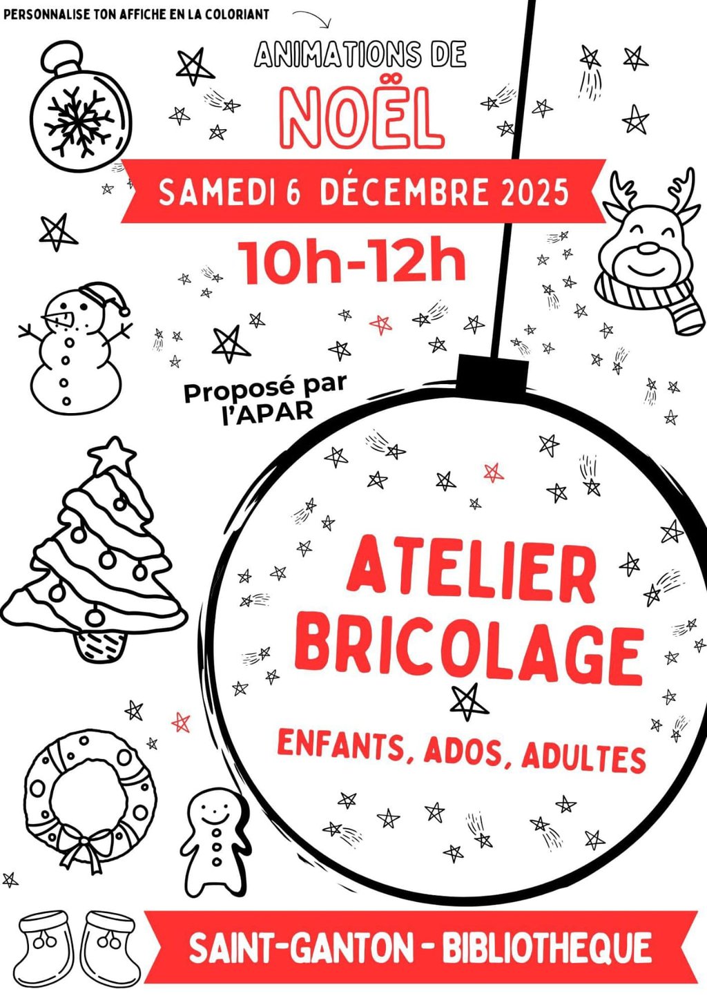 SAMEDI 6 DÉCEMBRE DE 10H À 12H - ATELIER BRICOLAGE DE NOËL À LA BIBLIOTHÈQUE