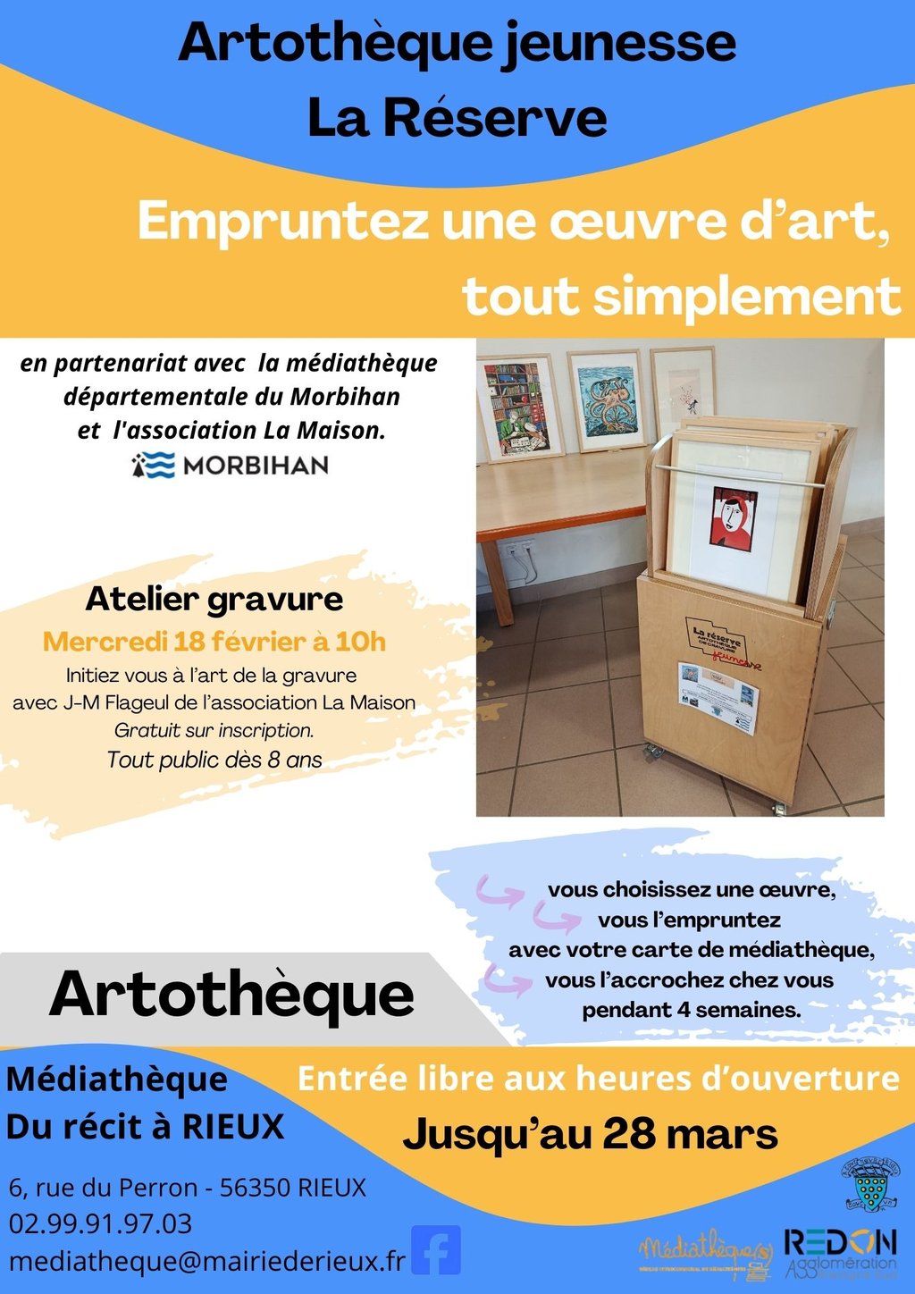 Il s’agit d’une artothèque itinérante qui voyage de médiathèque en médiathèque dans tout le Morbihan.