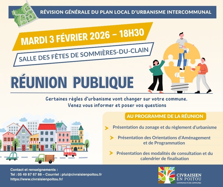 📆 Mardi 3 février 2026 à 18 h 30, salle des fêtes à Sommières du Clain.