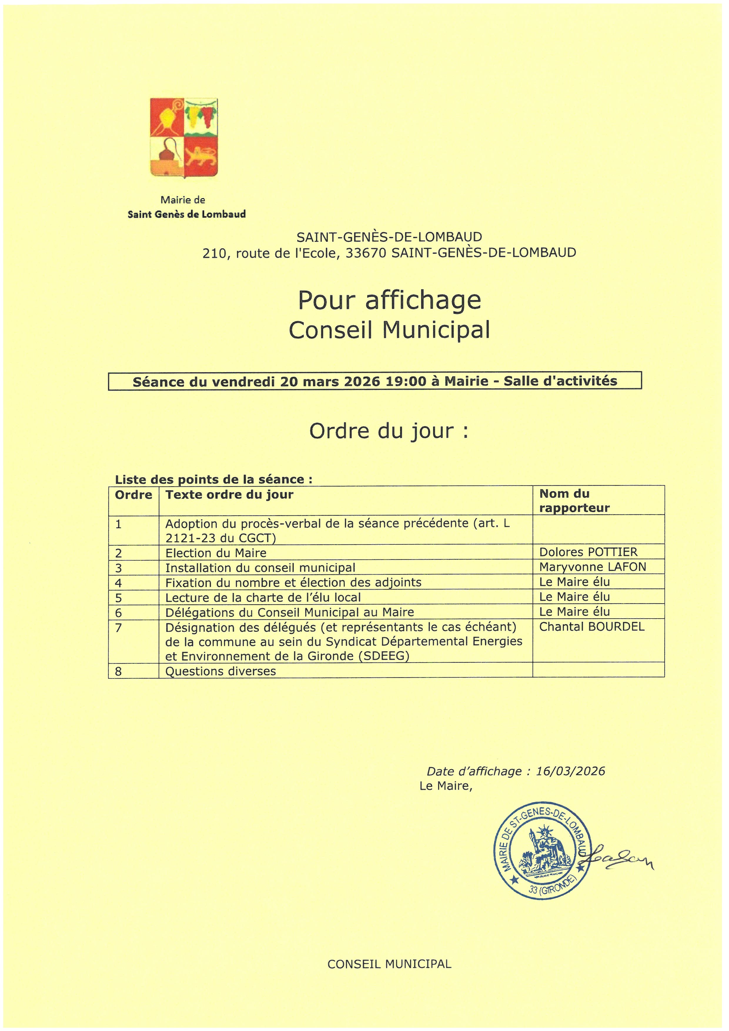 CONSEIL MUNICIPAL - INSTALLATION DU CONSEIL MUNICIPAL