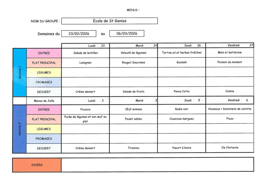 MENUS CANTINE DU 23 FÉVRIER 2026 AU 06 MARS 2026