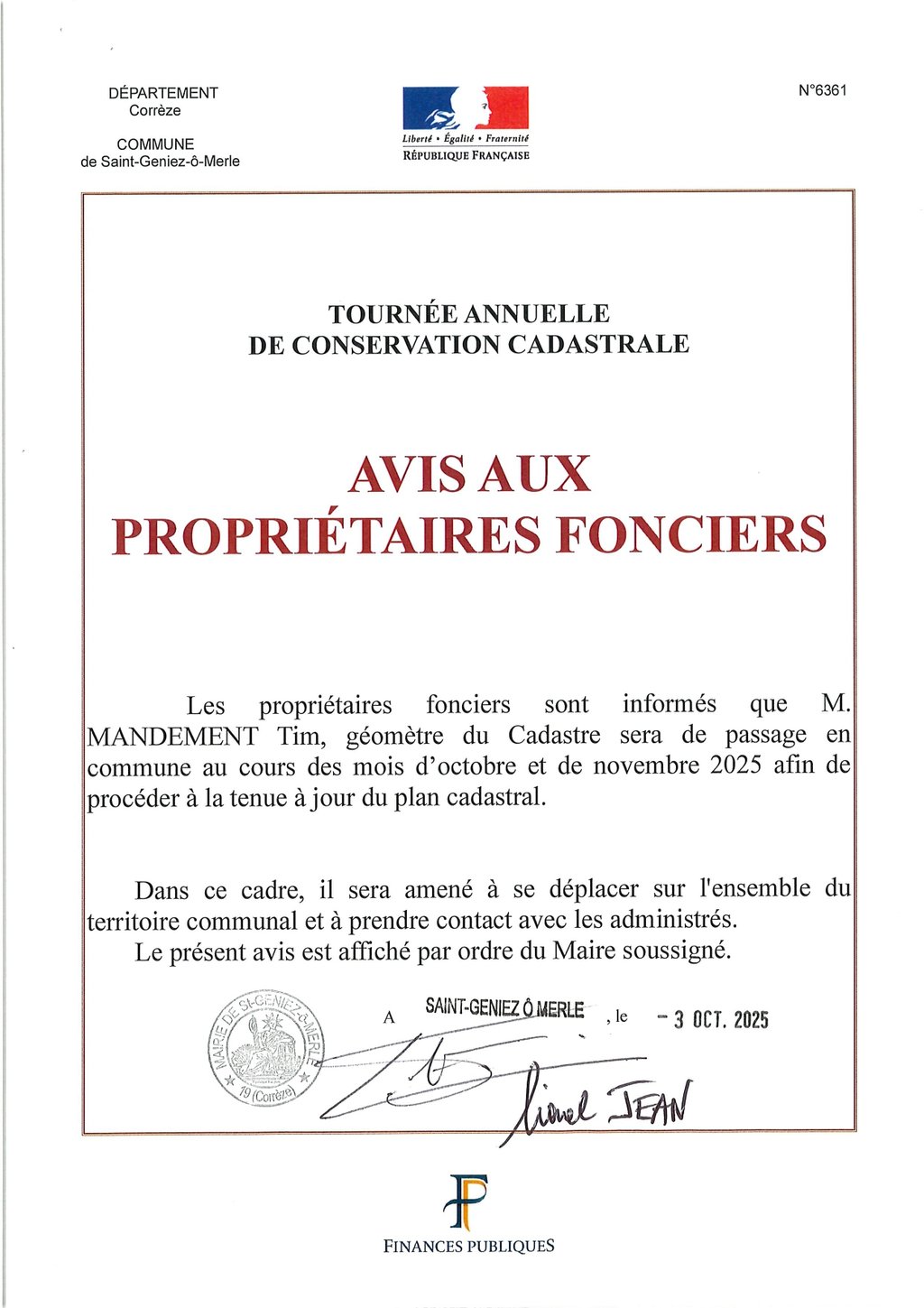 MISE A JOUR DU PLAN CADASTRAL-SAINT GENIEZ O MERLE-2025