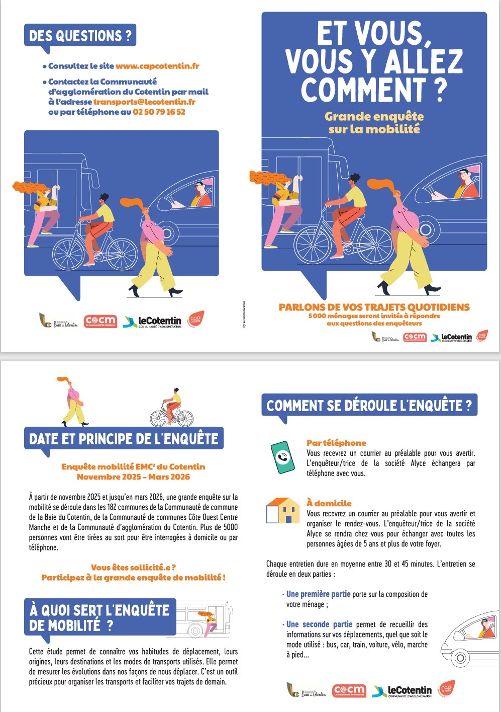 Réalisation prochaine d'une grande enquête mobilité du Cotentin (Enquête Mobilité Certifiée CEREMA - EMC²).