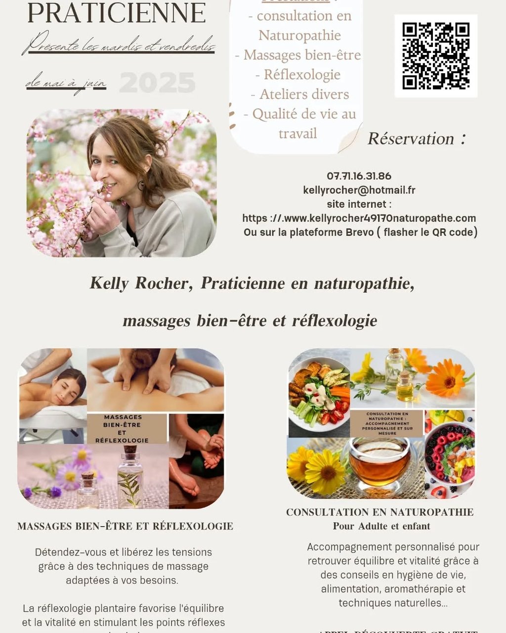 Je suis Kelly, infirmière passionnée par la médecine intégrative et praticienne en naturopathie, spécialisée dans les massages bien-être et la réflexologie à domicile dans le #maineetloire49 et en cabinet ( les mardis et vendredis) à Saint Georges sur Loire.