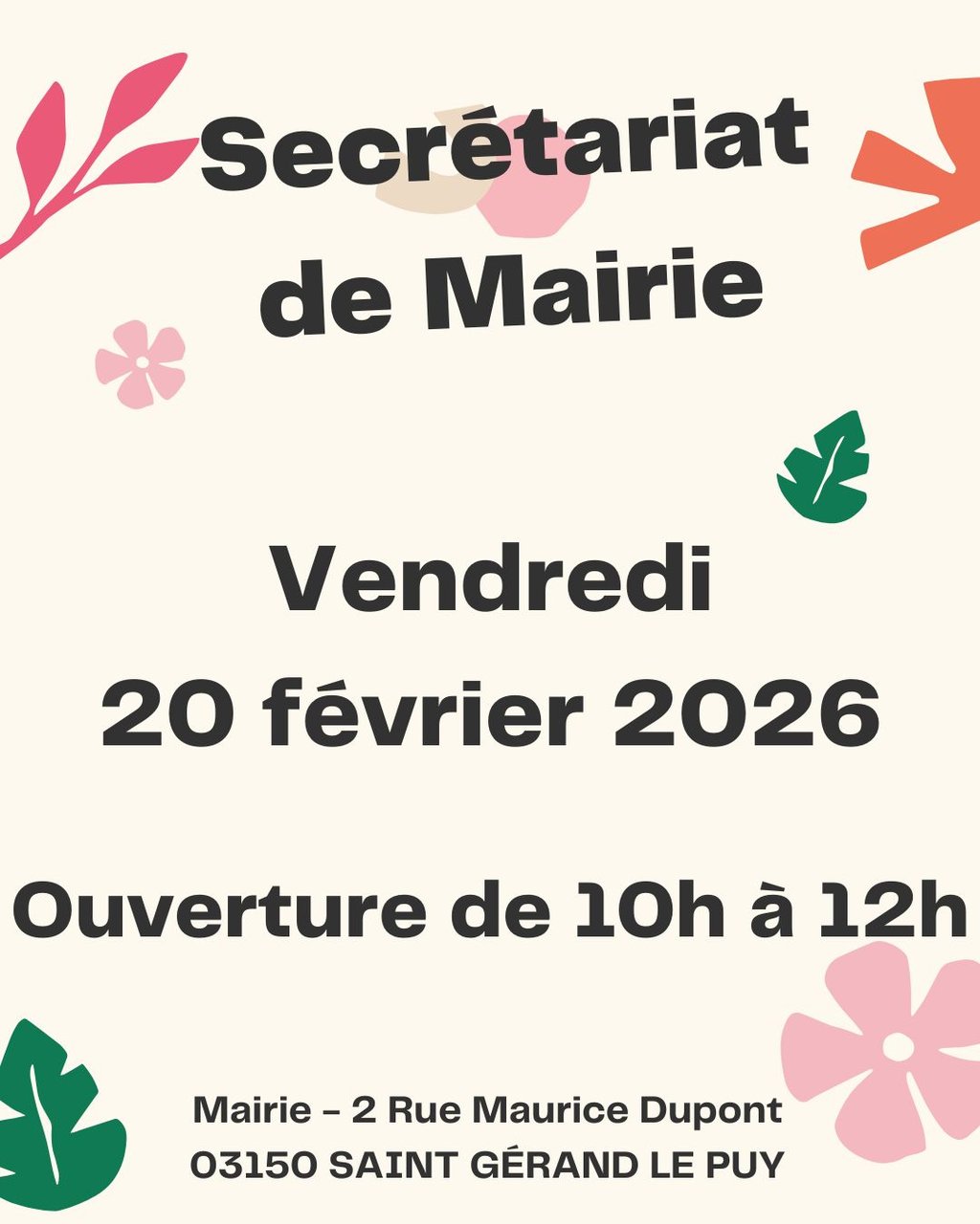 OUVERTURE DU SECRÉTARIAT DE MAIRIE