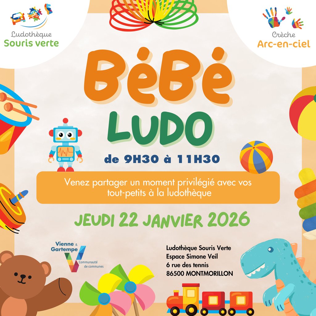 Venez partager un moment avec vos touts-petits à la ludothèque Souris verte, 6 rue des tennis à Montmorillon, de 9h30 à 11h30 le :