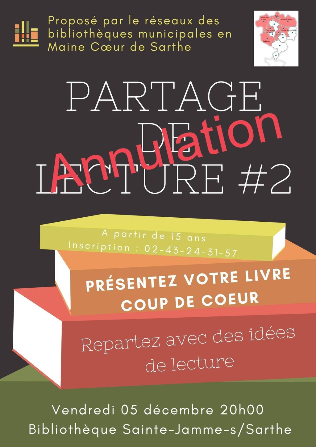 L'animation Partage de lecture du vendredi 05 décembre est annulée.
