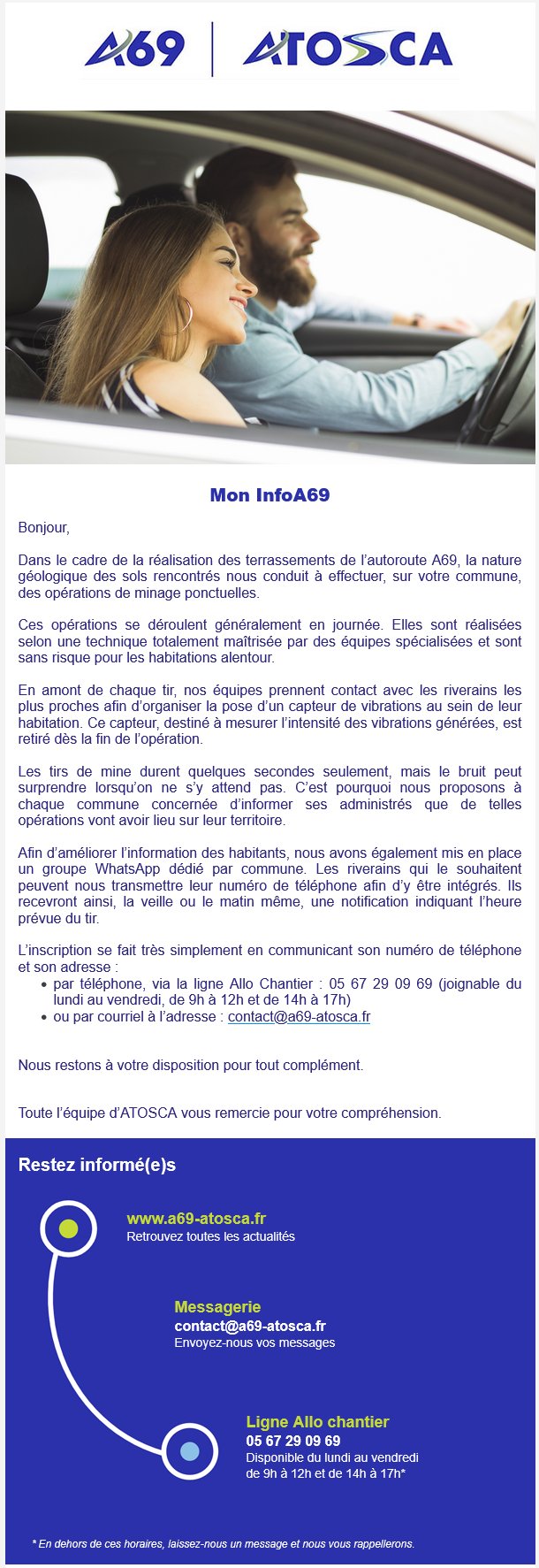 A69 : INFORMATIONS SUR LES TIRS DE MINE