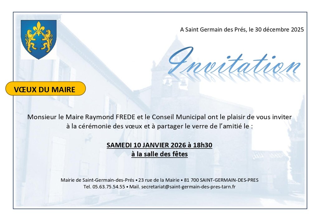 Samedi 10 janvier 2026 à 18h30 à la Salle des Fêtes de Saint Germain des Prés