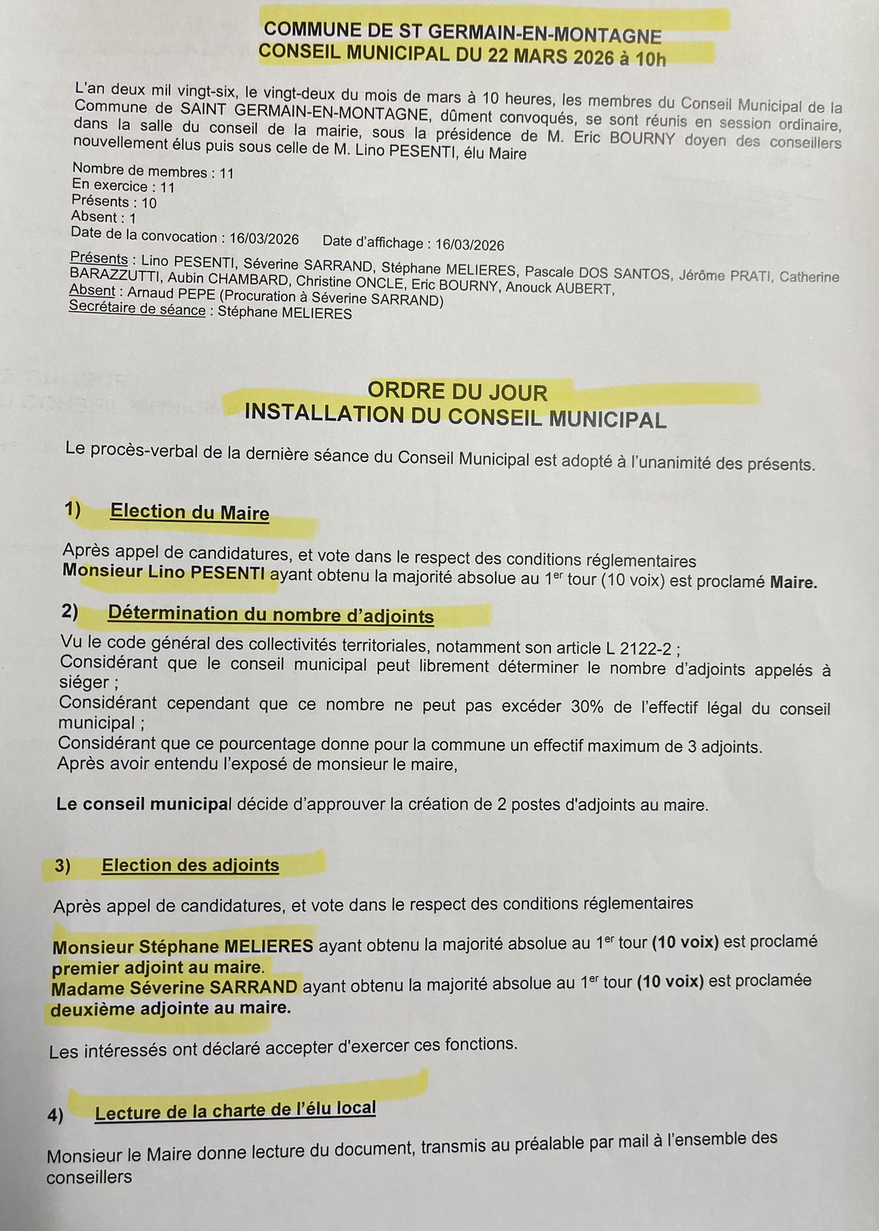 Cette équipe est désormais en place pour porter vos projets, écouter vos attentes et œuvrer au quotidien pour le bien-être de Saint-Germain-en-Montagne. Nous sommes déterminés à travailler ensemble, dans la transparence et l’écoute, pour faire avancer notre commune.
