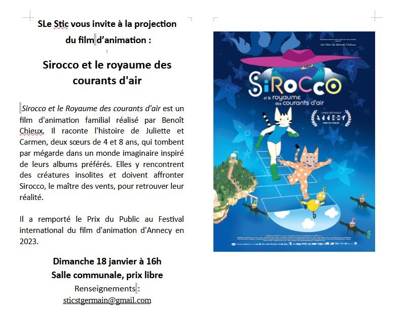LE STIC VOUS INVITE À LA PROJECTION DU FILM D’ANIMATION : SIROCCO ET LE ROYAUME DES COURANTS D'AIR