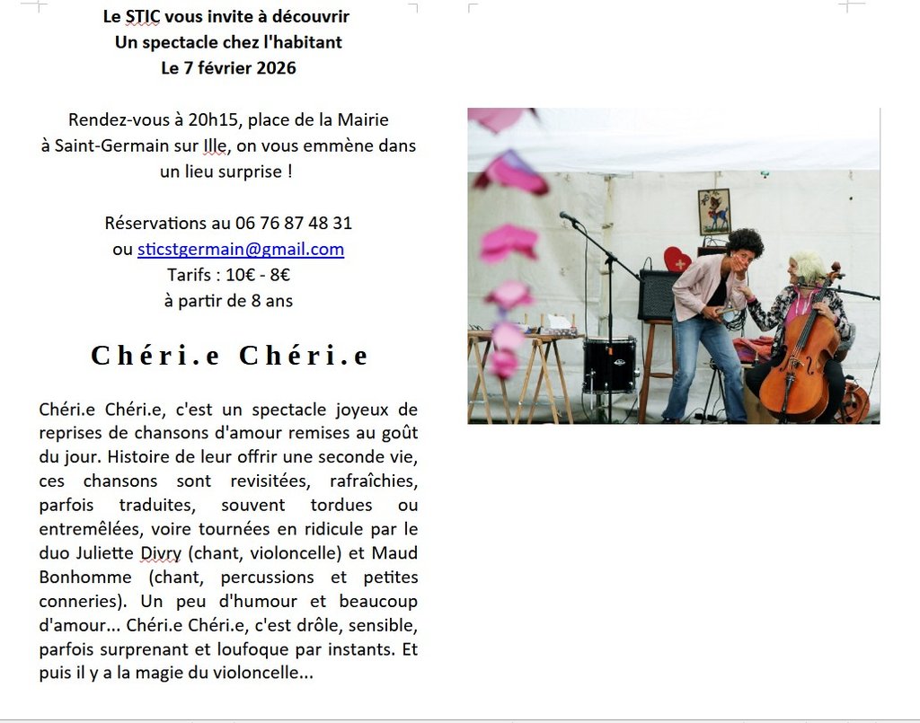 LE STIC VOUS INVITE À DÉCOUVRIR UN SPECTACLE CHEZ L'HABITANT LE 7 FÉVRIER 2026