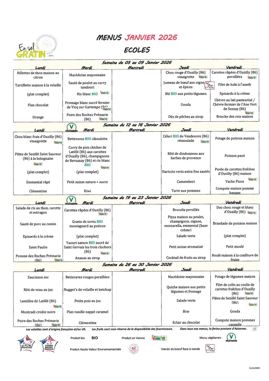 Tarif restaurant scolaire par rapport au quotient familial :