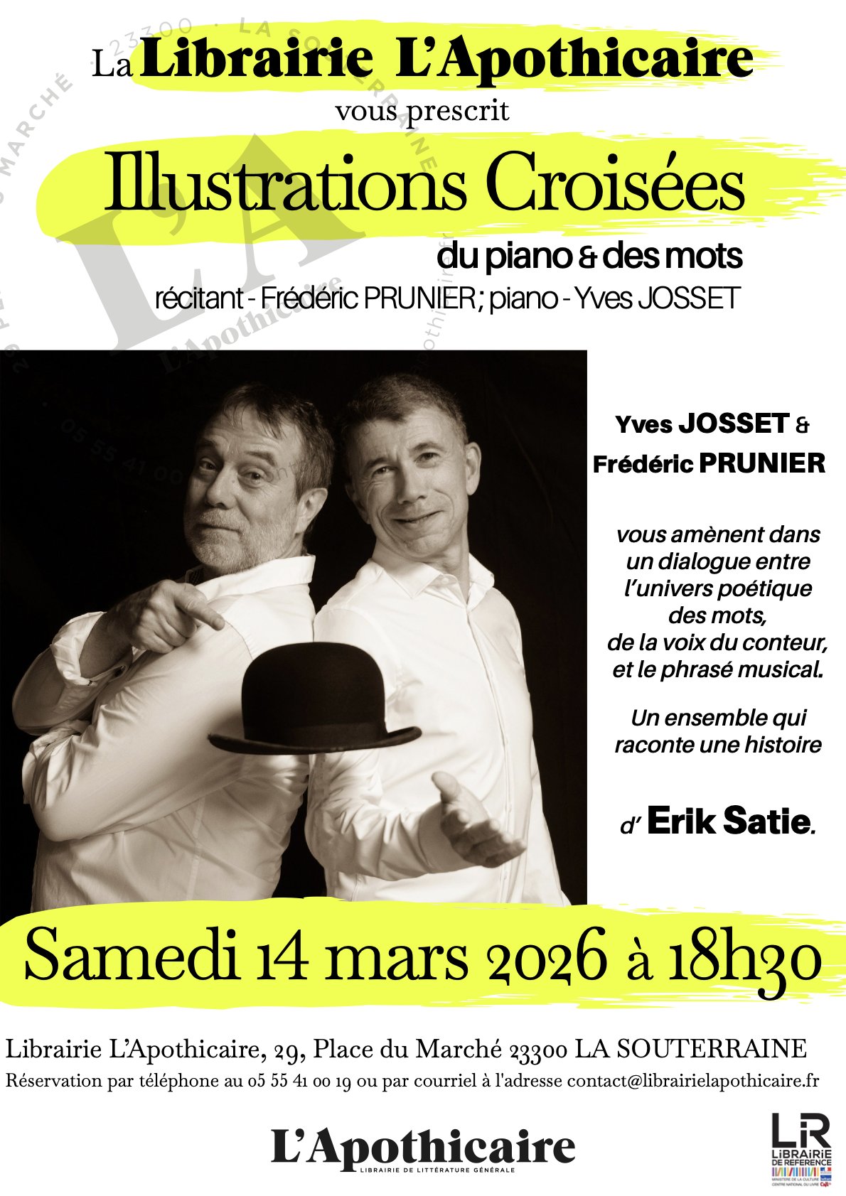 Lecture-Concert : "Illustrations croisées" autour d'Erik SATIE avec Yves JOSSET & Frédéric PRUNIER
