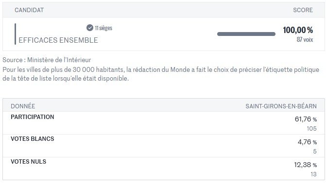 RÉSULTATS DES ÉLECTIONS MUNICIPALES