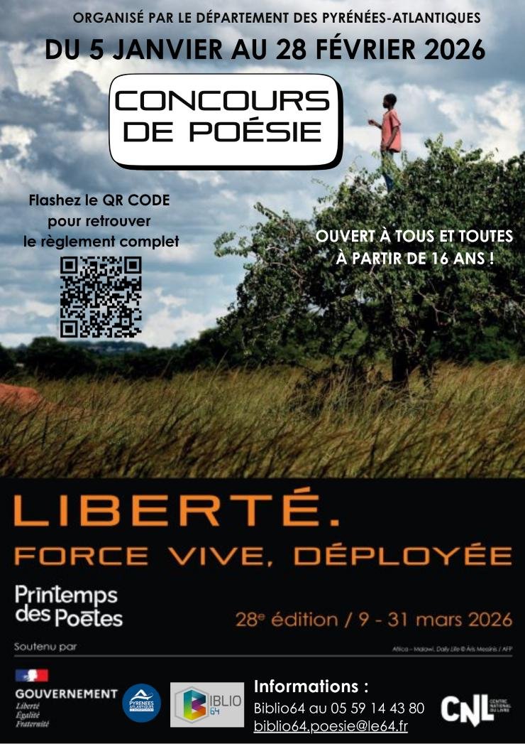 Concours de Poésie sur le thème : "LIBERTÉ, Force vive déployée".