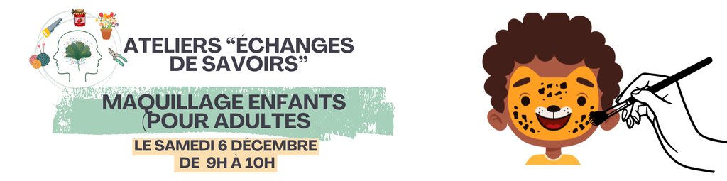 Envie d’apprendre ou de partager vos connaissances sur les techniques de base pour maquiller les enfants pour le carnaval où d'autres évènements festifs ? Rejoignez-nous pour un moment d’échange convivial ! Vous aurez ensuite la possibilité si vous le souhaitez de mettre en pratiques les techniques apprises directement sur les enfants dans le cadre de la fête des lutins (aucune obligation)