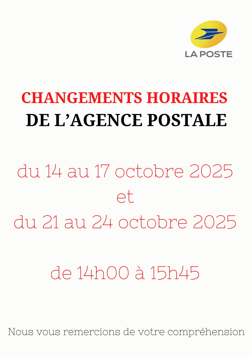 CHANGEMENT HORAIRES - AGENCE POSTALE