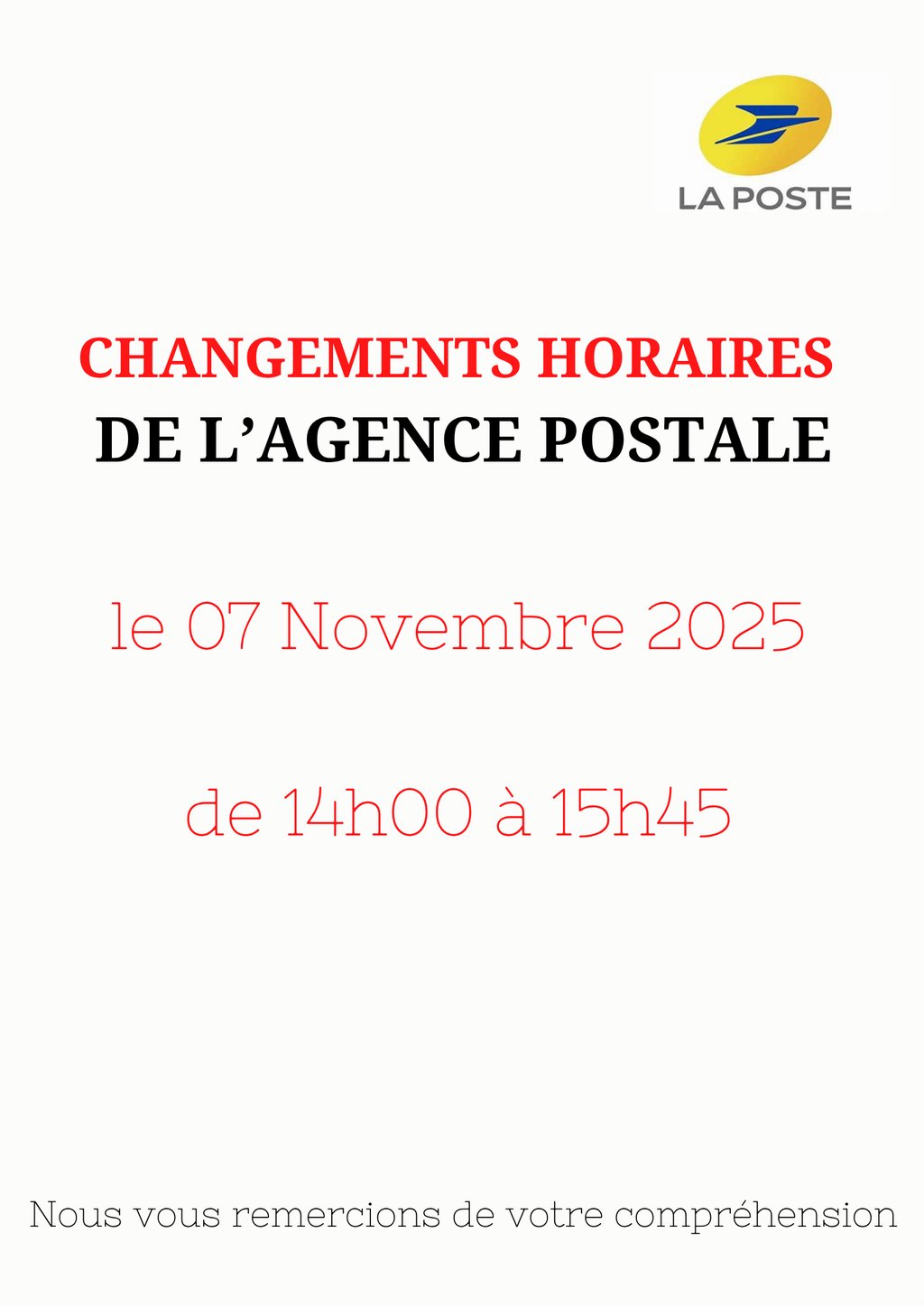 CHANGEMENT D'HORAIRES - AGENCE POSTALE