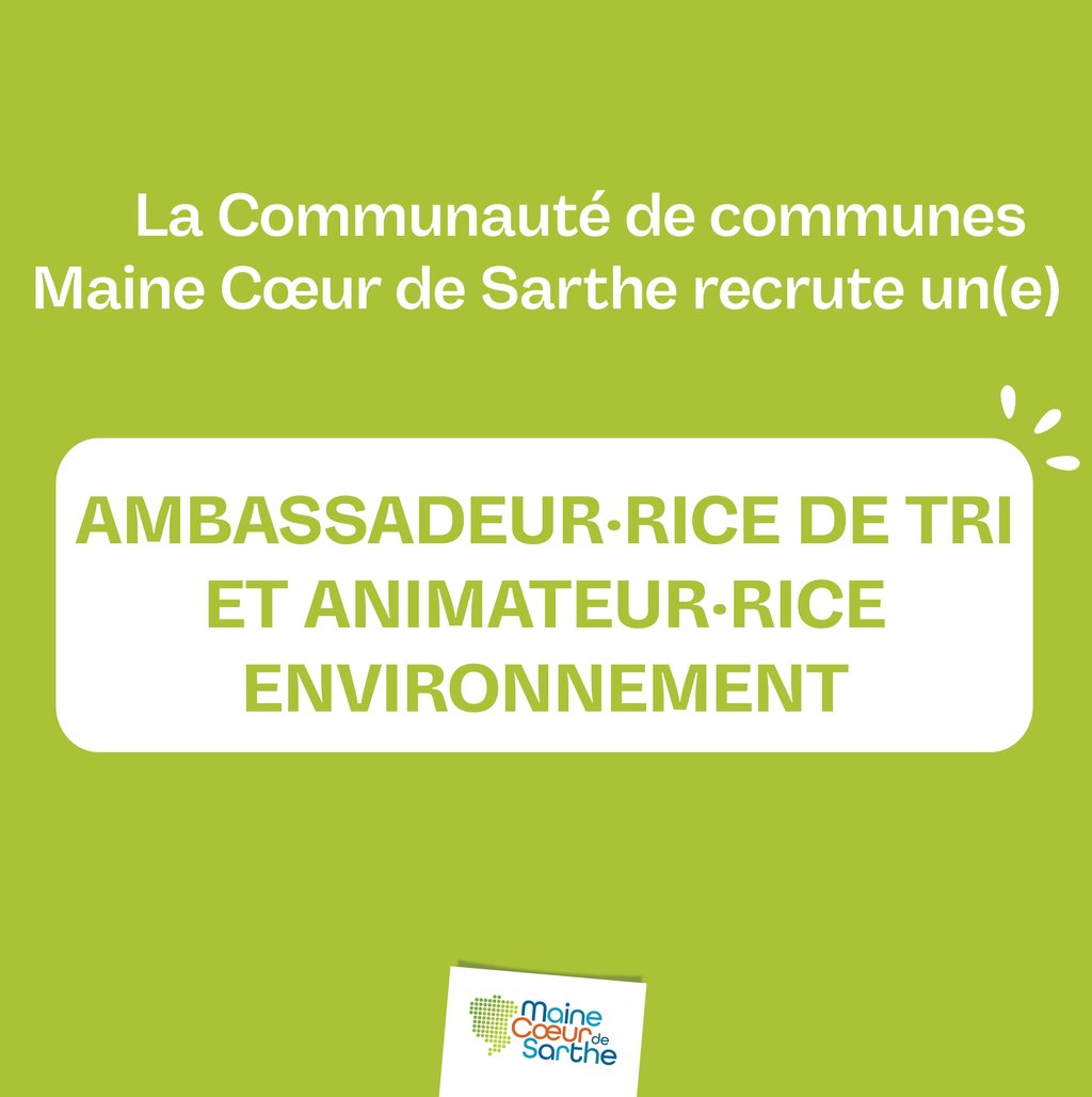[RECRUTEMENT] AMBASSADEUR·RICE DE TRI ET ANIMATEUR·RICE ENVIRONNEMENT POUR LA CC MAINE CŒUR DE SARTHE