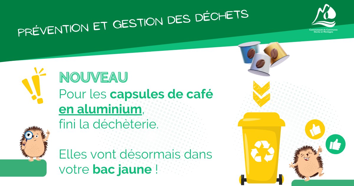 Nouveauté : les capsules de café en aluminium vont désormais dans le bac jaune. Elles ne sont plus collectées en déchèterie.