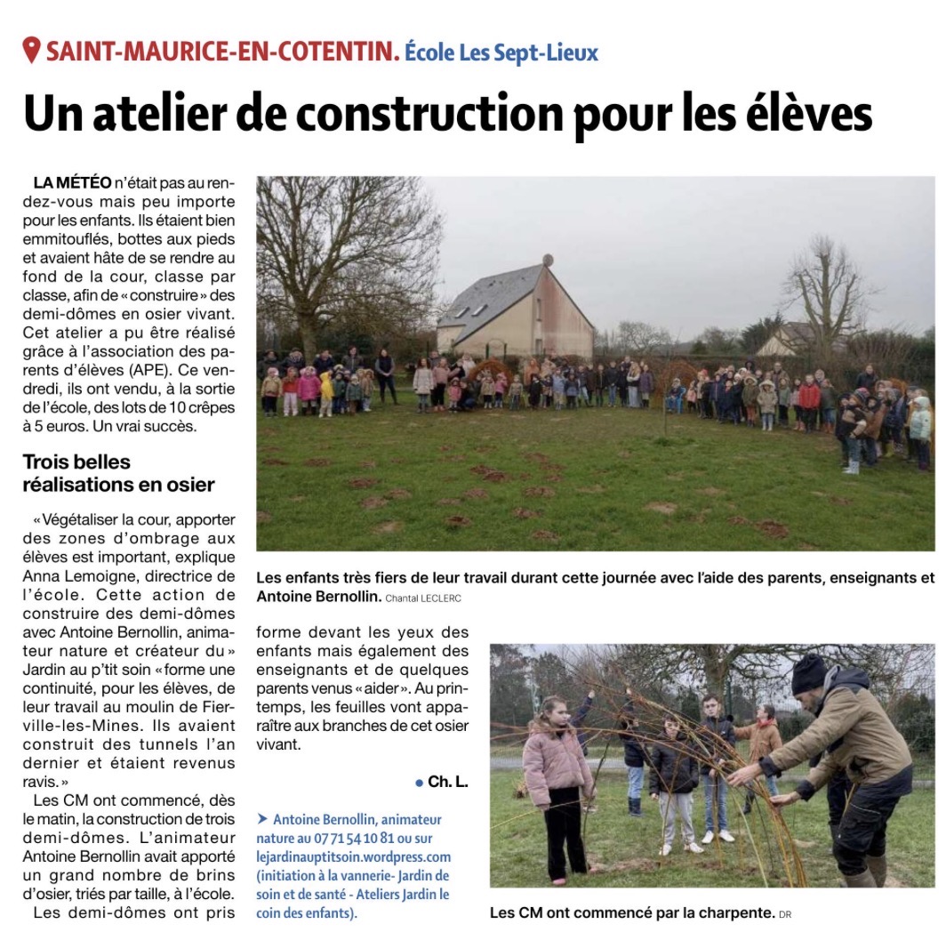 Ecole des 7 Lieux : Félicitations aux enfants : des bottes, des brins d’osier et beaucoup d’énergie… le résultat est là !