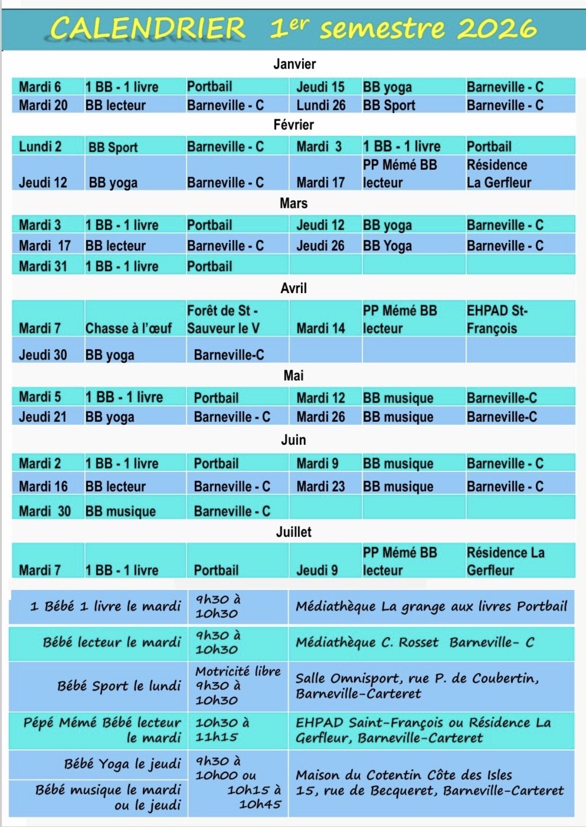 - Bébé lecteur à la médiathèque Clément Rosset de Barneville-Carteret – les enfants et les parents sont encadrés par l’équipe de la médiathèque