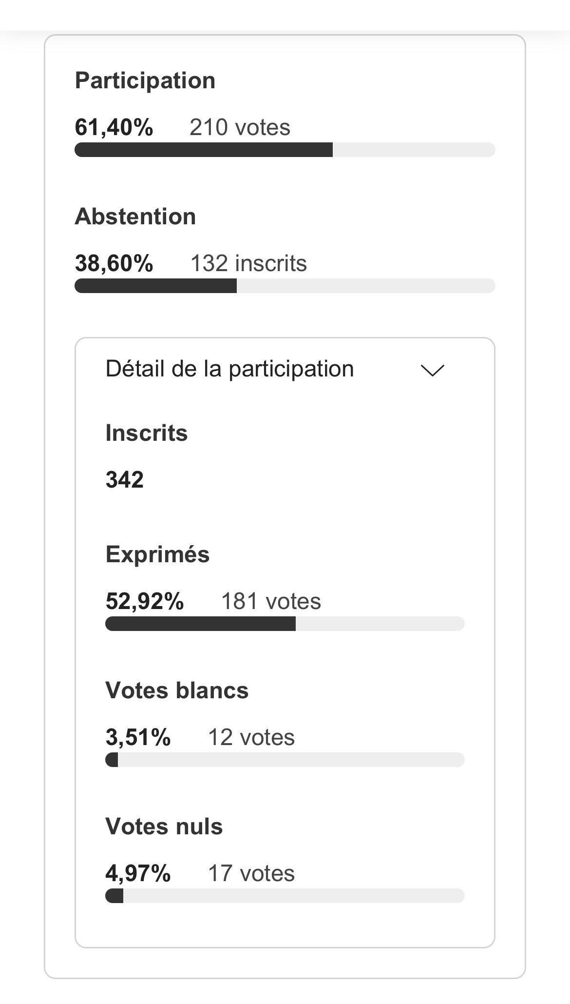Nombre de votants : 210