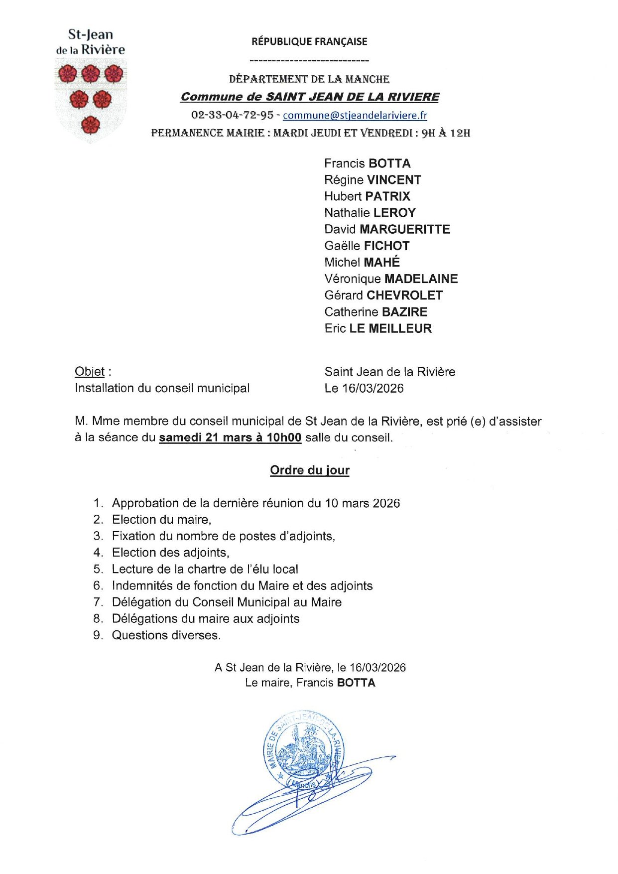 RÉUNION INSTALLATION DU CONSEIL MUNICIPAL - 21/03/2026
