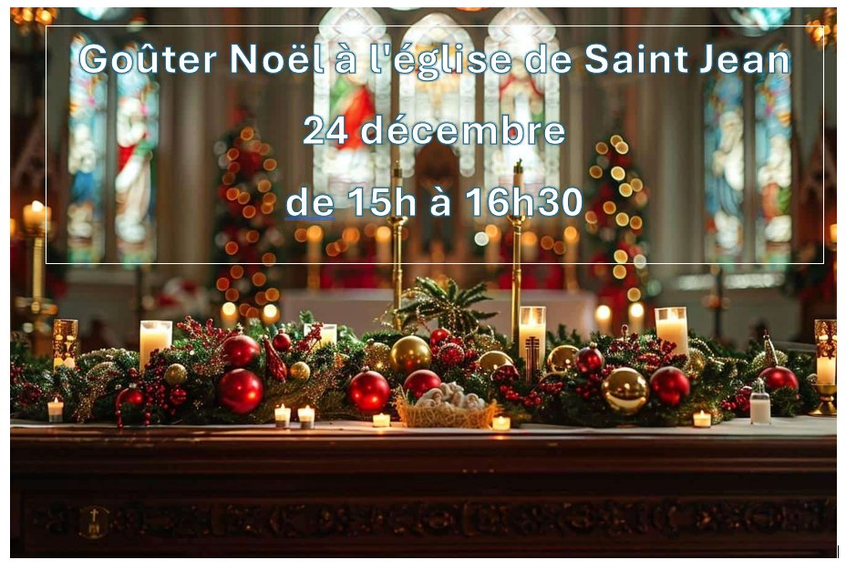 Comme chaque année, la paroisse de Saint-Jean a le plaisir d’inviter les enfants et leurs parents à un goûter musical de Noël, qui se tiendra le 24 décembre de 15h à 16h30.