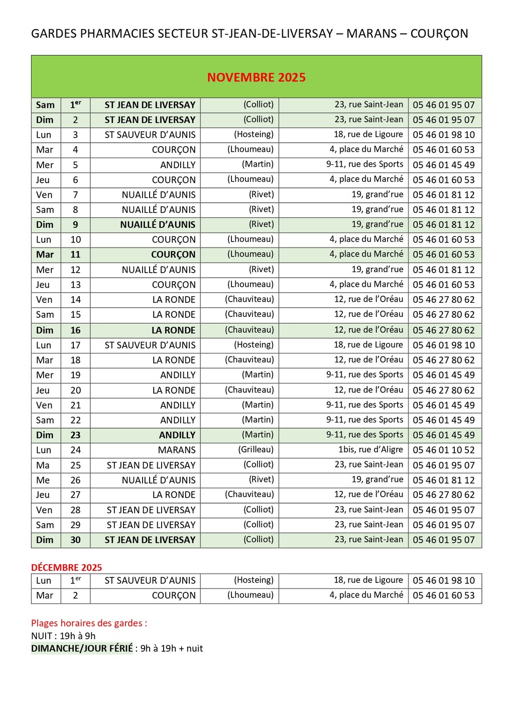[PHARMACIES DE GARDE // NOVEMBRE]