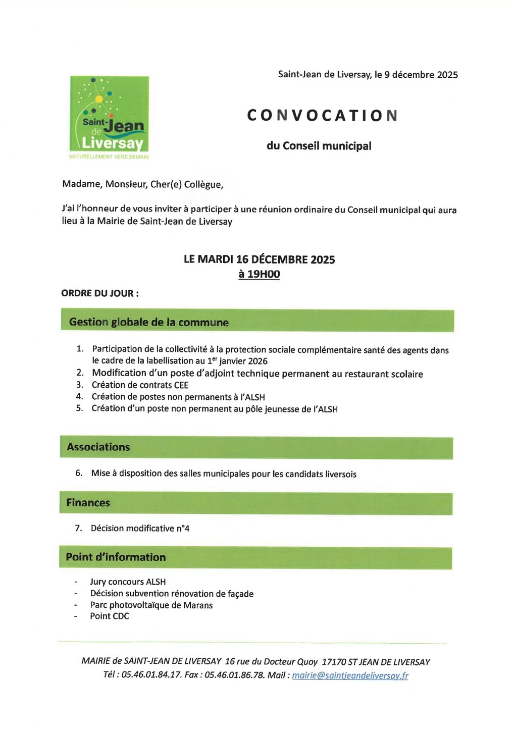 [CONVOCATION AU CONSEIL MUNICIPAL - 16 DECEMBRE 2025]