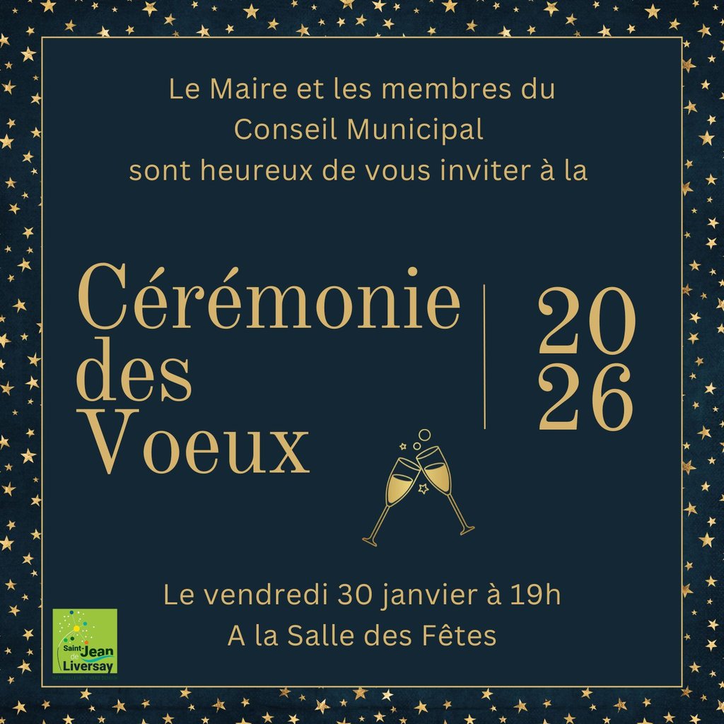 Le Maire et les membres du Conseil Municipal sont heureux de vous inviter à la Cérémonie des Voeux 2026