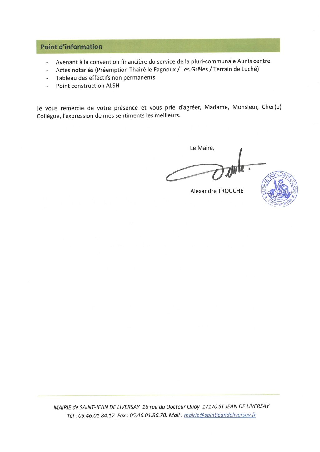 [CONVOCATION AU CONSEIL MUNICIPAL DU LUNDI 26 JANVIER - 19H]
