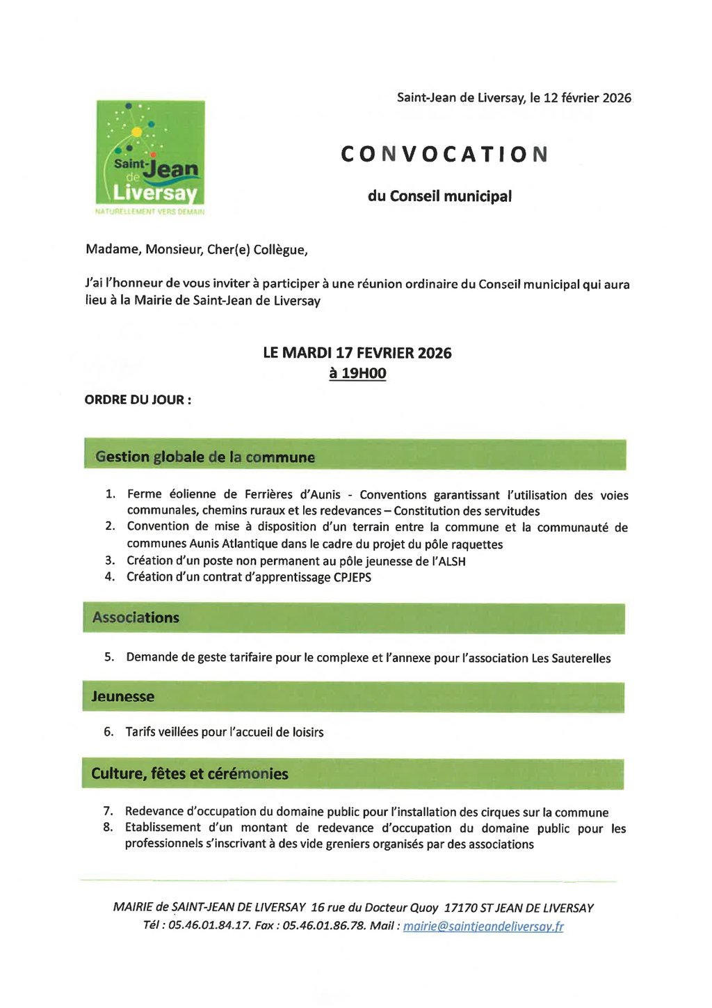[CONVOCATION AU CONSEIL MUNICIPAL DU MARDI 17 FEVRIER - 19H]