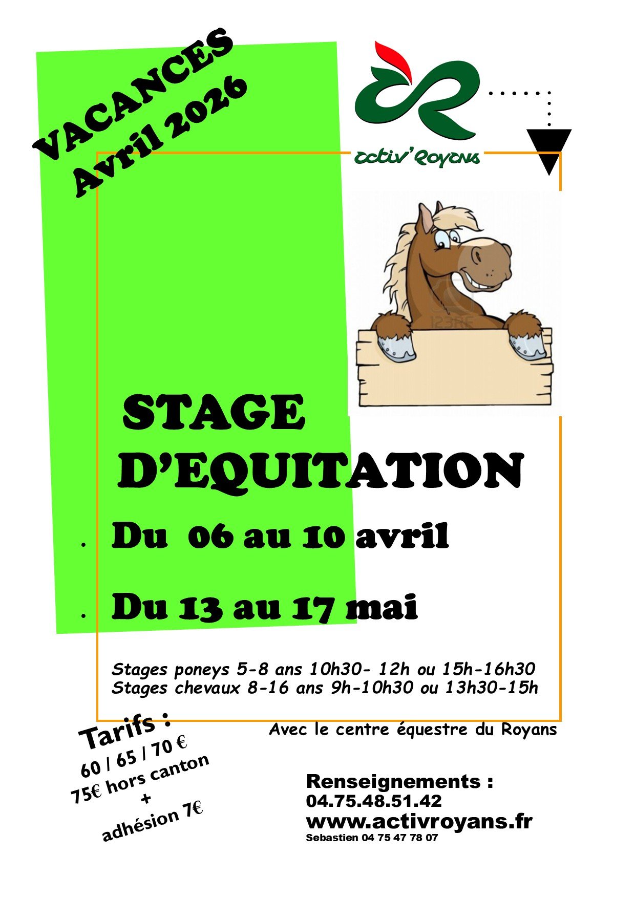 Activ’Royans propose un stage d’équitation pour les vacances d’avril :
