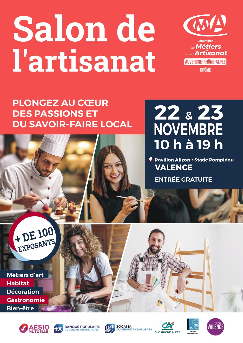 La Chambre de Métiers et de l’Artisanat de la Drôme organise une nouvelle édition du Salon de l’Artisanat, les samedi 22 et dimanche 23 novembre 2025, de 10h à 19h, au Pavillon Alizon – Stade Pompidou à Valence.