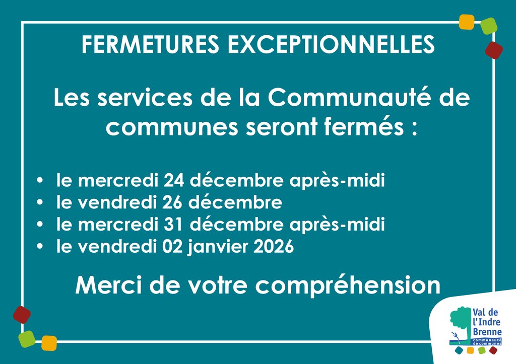 FERMETURES EXCEPTIONNELLES - FIN D'ANNÉE