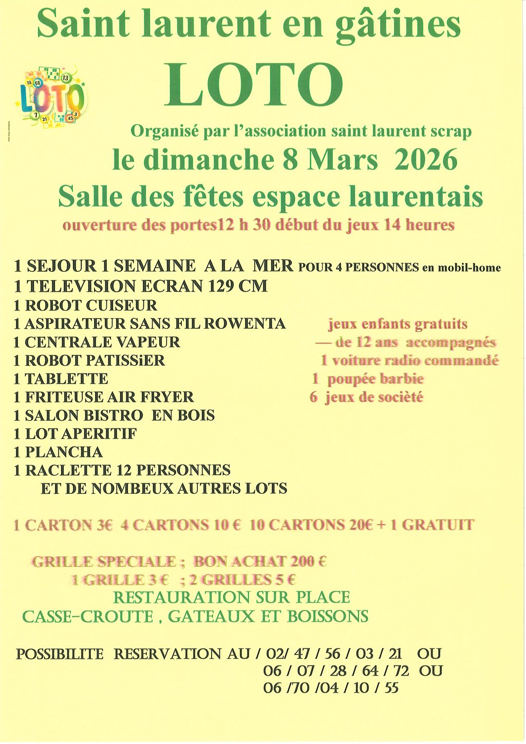 Lâassociation ST LAURENT SCRAP organise son loto :