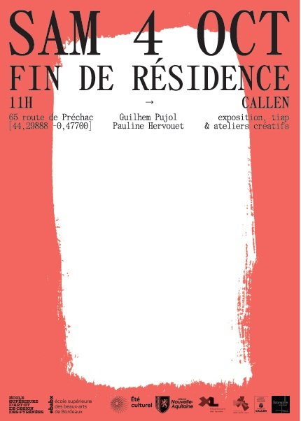 Après 2 mois de résidence, Pauline Hervouet et Guilhem Pujol vont présenter leurs travaux et recherches le samedi 4 octobre 2025 dans l'ancienne auberge de Callen.